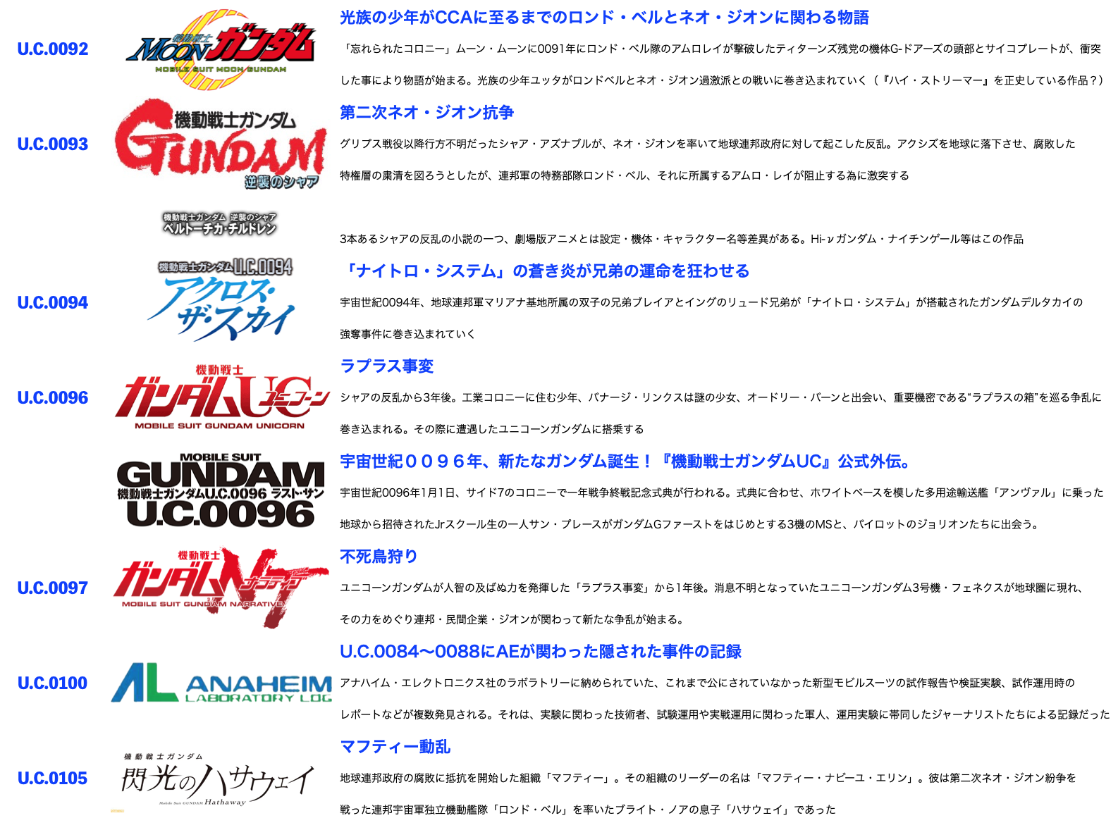 なのでとりあえず数あるガンダム作品の時系列くらいはわかるようにと思い