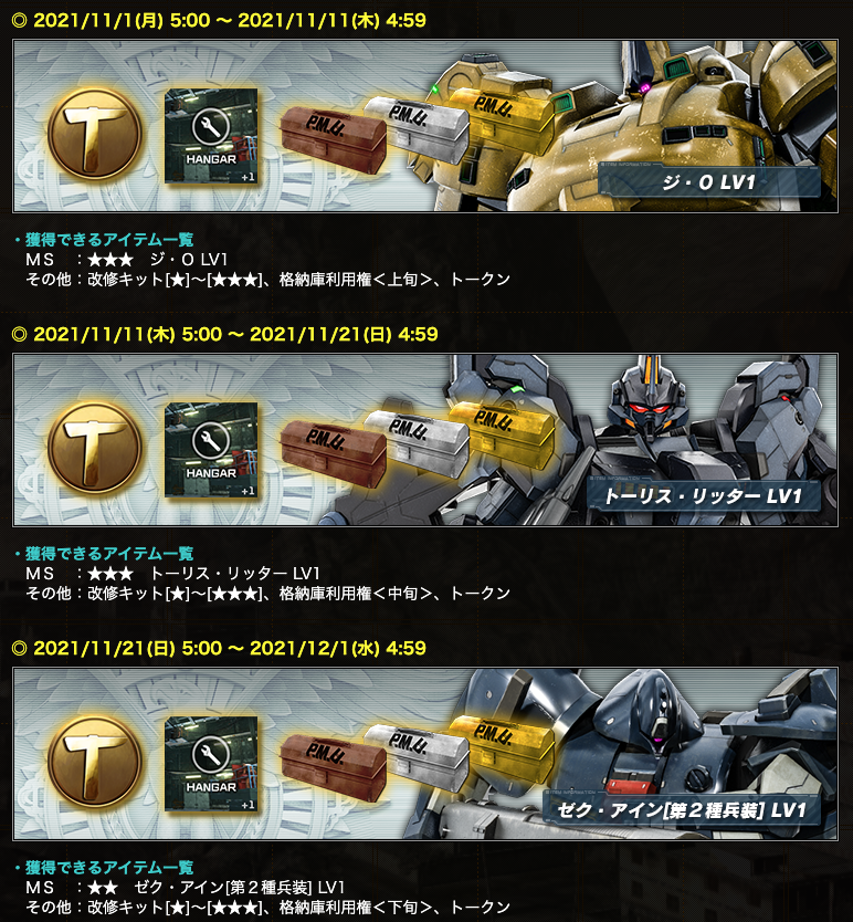 その他:改修キット[★]~[★★★]、格納庫利用権<上旬>、トークン