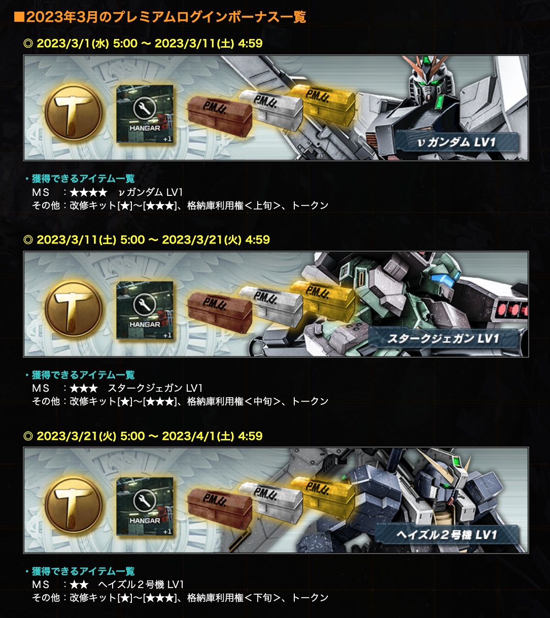 ■2023年3月のプレミアムログインボーナス一覧