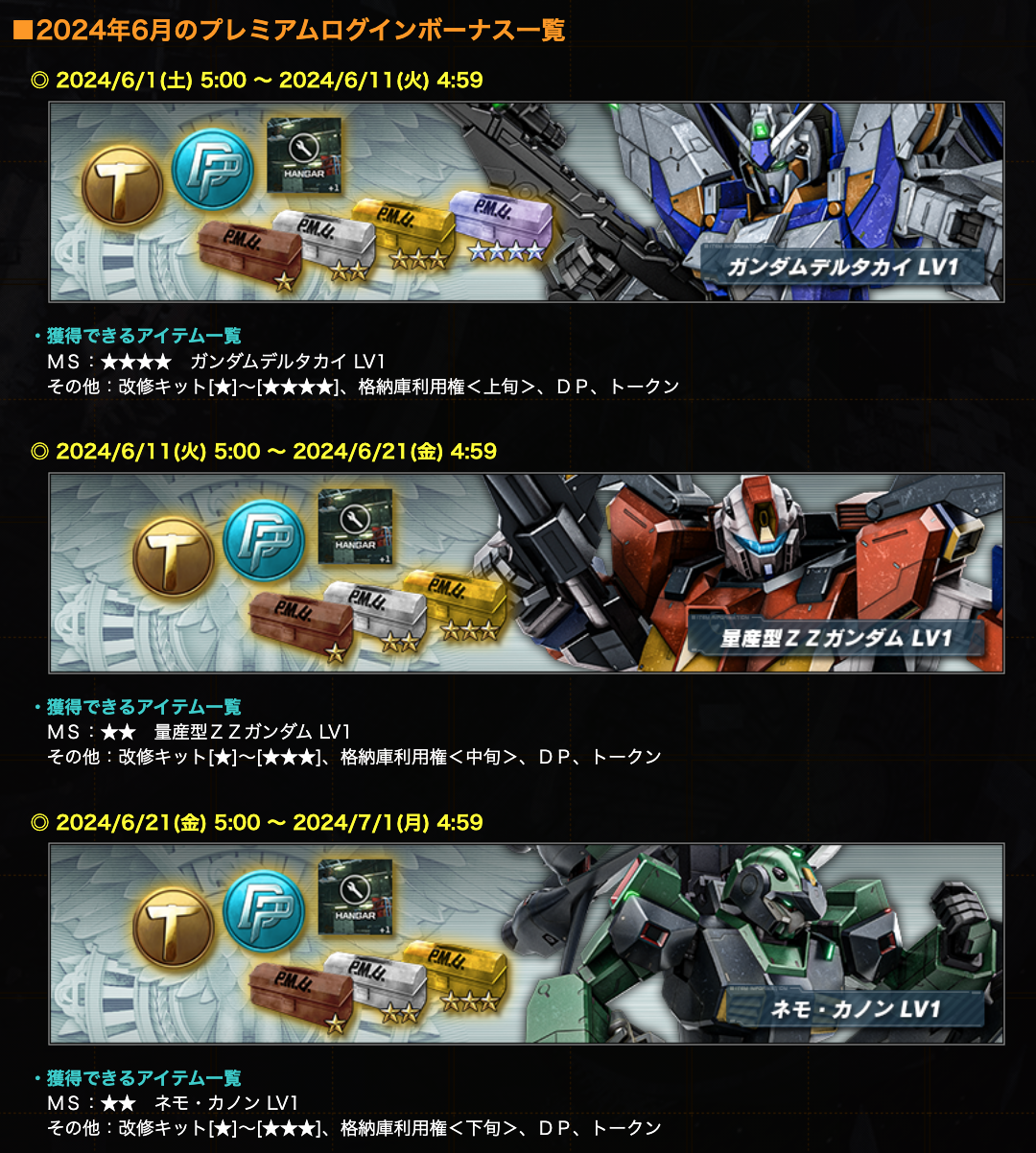 ■2024年6月のプレミアムログインボーナス一覧