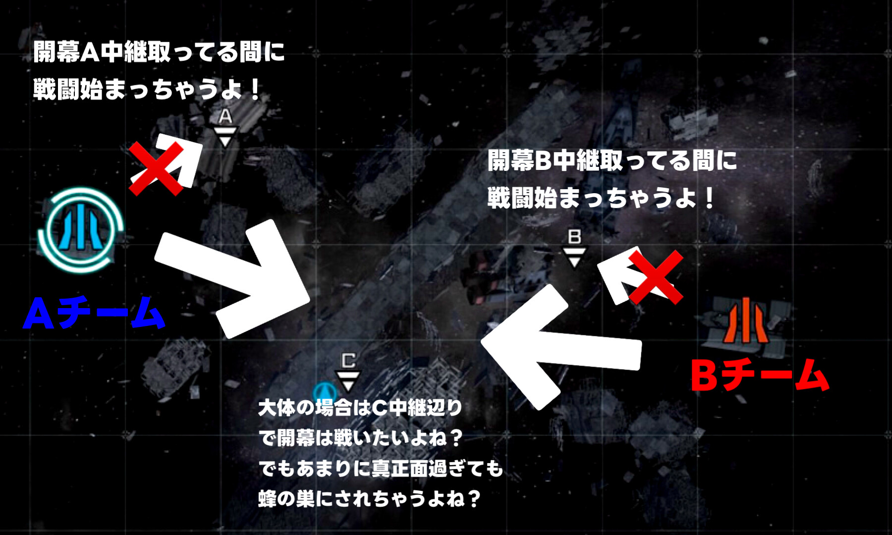 但し、C中継は厳密には両チームの中間にあれど