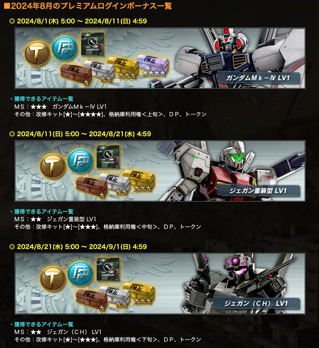 ■2024年8月のプレミアムログインボーナス一覧