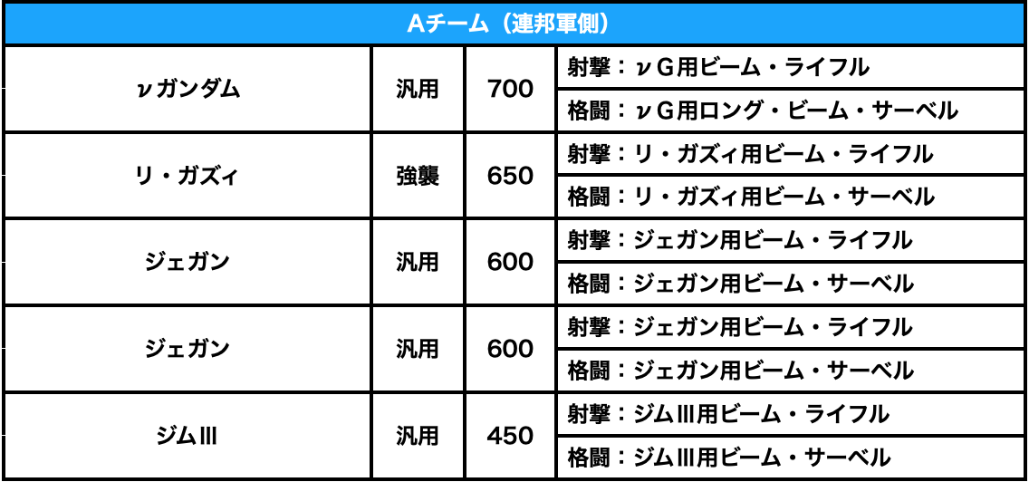 ◉Aチームの編成は全機ロンド・ベルではあるが