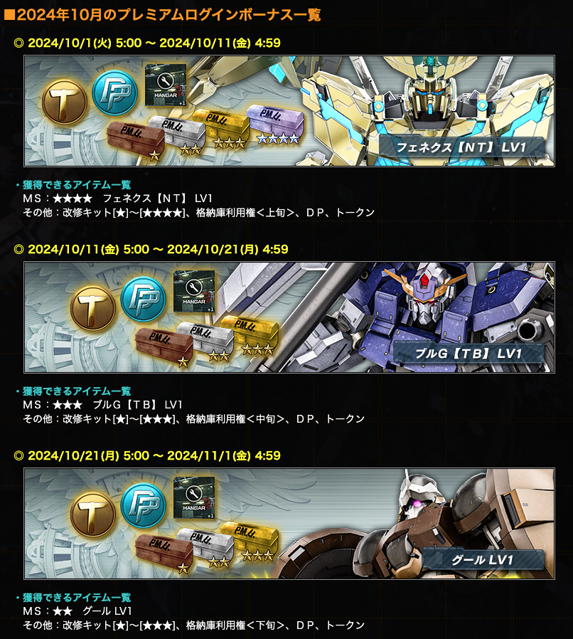 ■2024年10月のプレミアムログインボーナス一覧