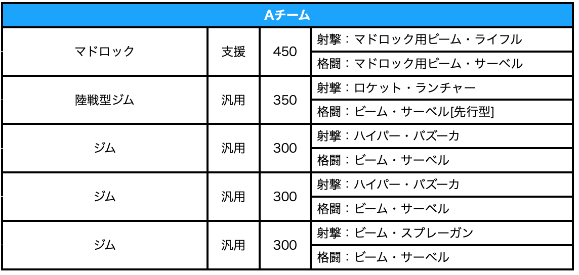 基本的に同兵科の汎用をみたいところだが、基本は陸戦型ジムを相手にする事が多いとは思われる