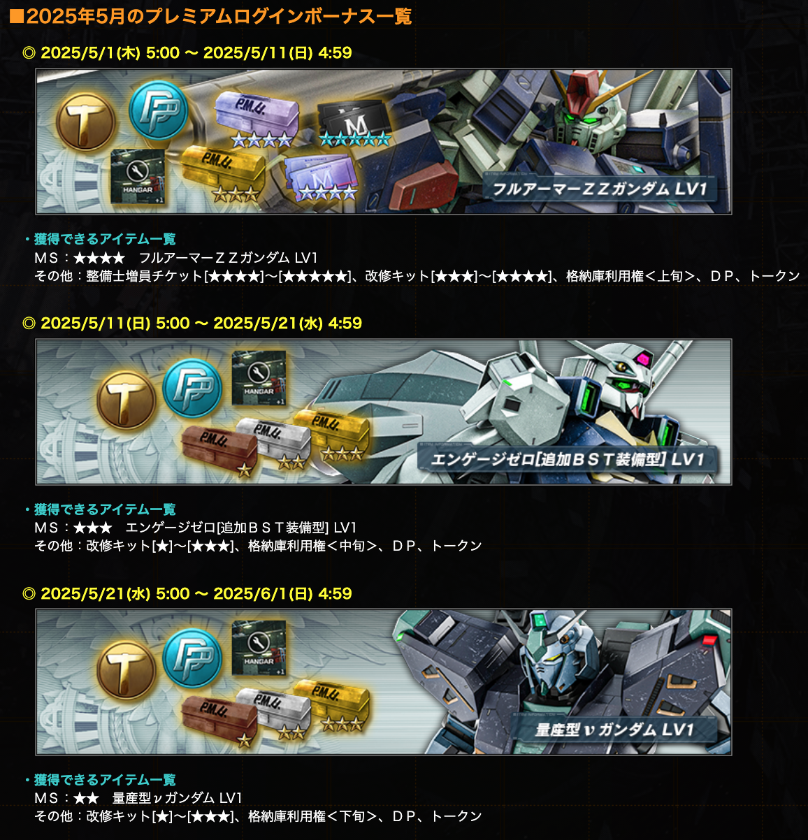 ■2025年5月のプレミアムログインボーナス一覧